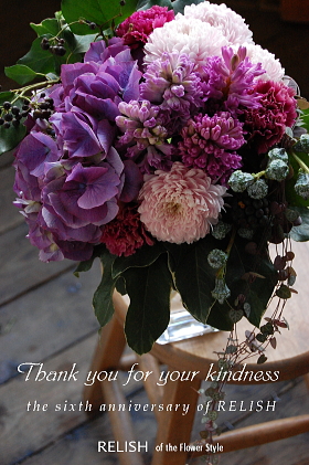 6th Anniversary... Thank you for your kindness!! the sixth anniversary. Copyright 2003-2010 RELISH of the flower style. All rights reserved |