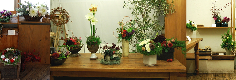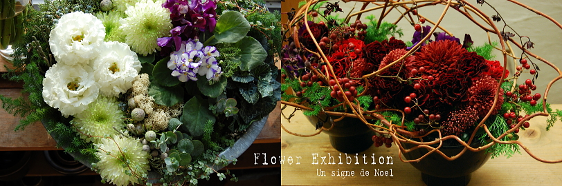 Flower Exhibition 2009.11.26(Thu) - 11.28(Sat) 生徒さん(ご希望者のみ)の作品と RELISHで 作品展を開催いたしました。 今回は signe de Noel “ノエルのあしおと” とテーマをつけ 一足早いクリスマスを演出しました。 |
