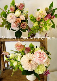 少しくすんだピンク系の花を使って、シックで大人っぽい花束に...。