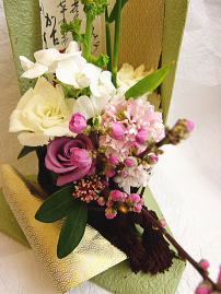 黒塗りのかごに、好きな和紙で着物のように包みこみ”和”を演出。