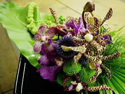 エキゾチックな蘭のバンダやモカラで丸く形作り、