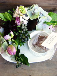ムスカリ、ビバーナムをシンプルに飾れば、柔らかな春の雰囲気に…。 |